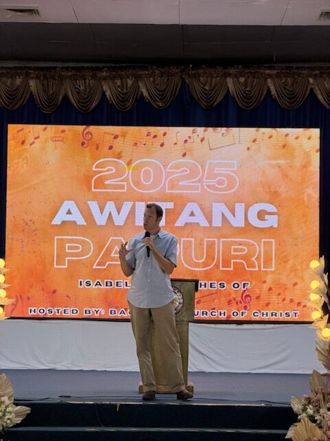 This was my first trip to Asia and my first trip to the Philippines. The flight from Nashville to San Francisco was about five hours. Interestingly, I was providentially seated by an atheist on this leg of the trip who lived in a Muslim country. We talked for almost four hours about God and the Bible. In the course of the discussion, he brought up the idea of a loving God and slavery in the Bible. I happened to have an Always Be Ready book that deals with that topic in chapter eight, which I pulled out of my carry-on bag and showed him. We had a great conversation, and I was able to get his contact information, and we are in communication. After that, the flight from San Fransico to Manila took about 15 hours, with another quick flight from Manila to Ilagan. All the travel went smoothly, and I arrived in Ilagan on Friday evening, prepared to speak on Saturday at the national singing. On Friday night, however, we learned that the super typhoon Fung-Wong was coming in. Thankfully, the national singing still took place, and I spoke to several hundred members of the Lord’s Church on Saturday morning. Because the Filipinos study English from an early age in school, I did not need a translator. The Byrums had shipped over Truth Be Told and Always Be Ready books to distribute at the event. Many of the attendees came from long distances. One young man drove a motorcycle about 10 hours to attend.