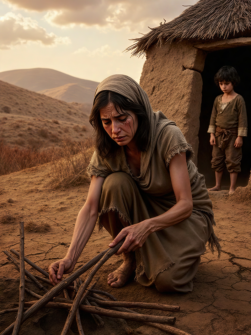 After a period of time, the water in the land dried up—including the Brook Cherith, where Elijah had been staying. God then told Elijah to “Arise, go to Zarephath…and dwell there. See, I have commanded a widow there to provide for you” (1 Kings 17:9). But when Elijah arrived, the widow had felt the painful effects of this long drought, and she did not think she had enough food to help him. She told Elijah, “I do not have bread, only a handful of flour in a bin, and a little oil in a jar; and see, I am gathering a couple of sticks that I may go in and prepare it for myself and my son, that we may eat it, and die” (1 Kings 17:12).