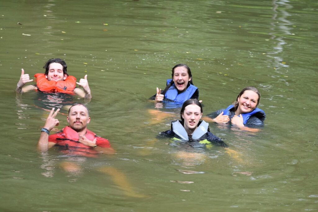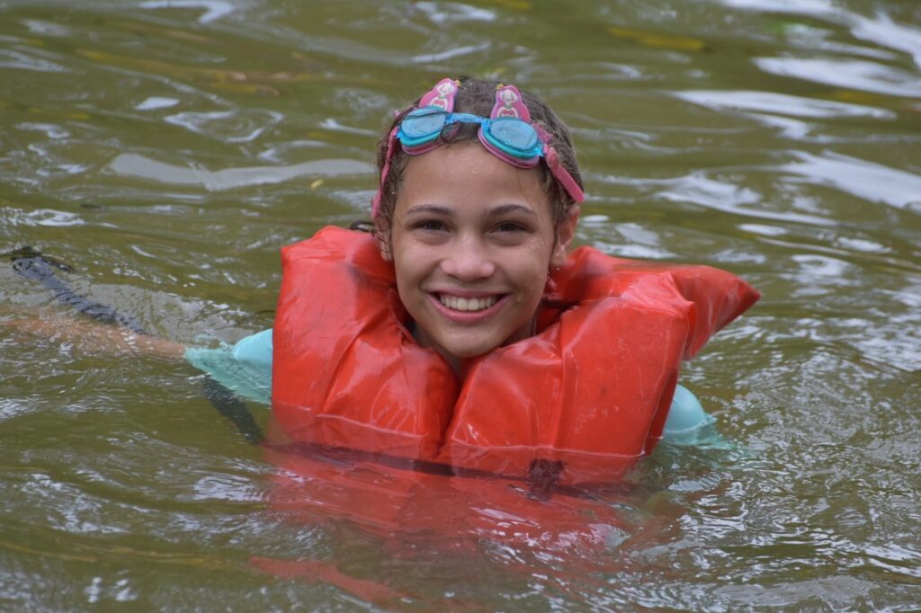 · Boys and girls are separated for swim time at the pool, but not at the creek. If campers choose to swim at the creek (which is a lot of fun), shorts and colored shirts must be worn at all times. Life jackets are provided.